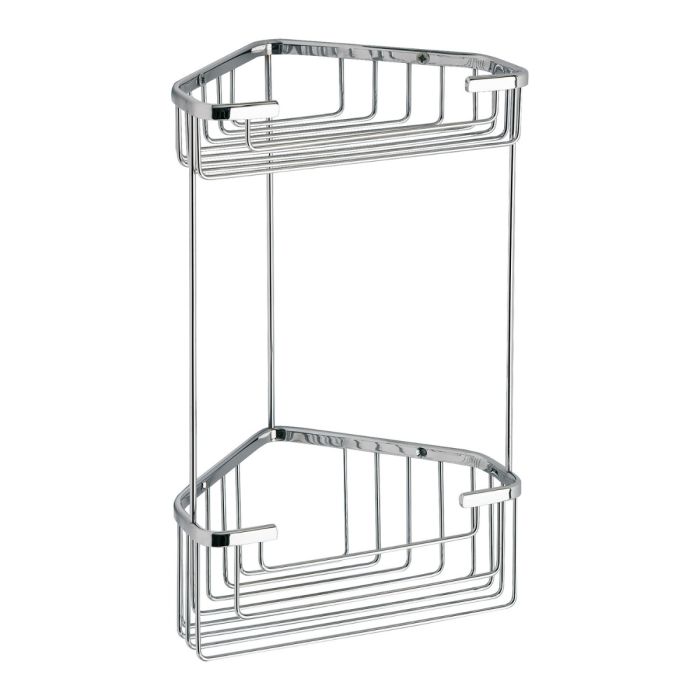 Portaoggetti doccia angolare linea AUGUSTUS in acciaio inox cromato, dimensioni 20×15.1 h. 32.5 cm, a 2 ripiani per sfruttare al meglio gli angoli della doccia, robusto e resistente alla corrosione, ideale per riporre shampoo, bagnoschiuma e accessori mantenendo ordine e praticità; fissabile con viti (incluse) per un montaggio sicuro e stabile, dal design minimale che valorizza l’ambiente bagno.