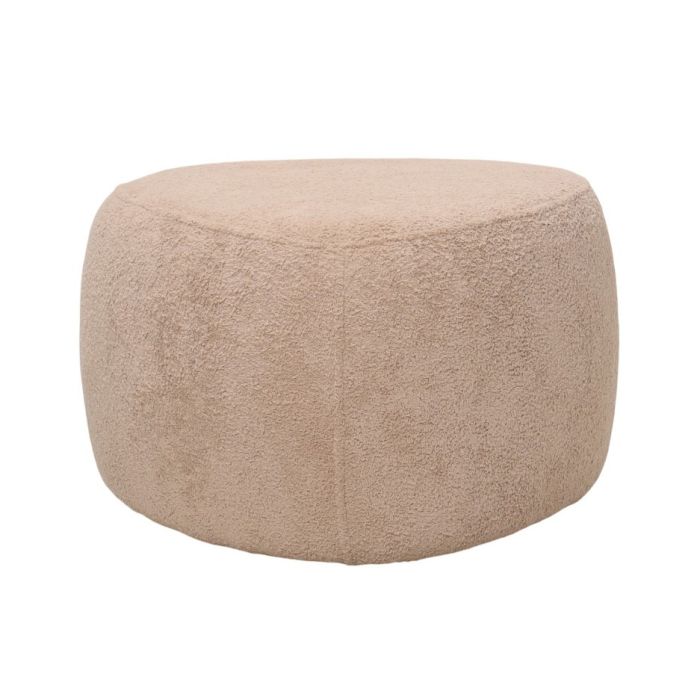 Pouf triangolare in legno imbottito dalle dimensioni 55×55 cm e altezza 34 cm, rivestito in tessuto poliestere effetto bouclé color beige che conferisce una texture calda e naturale; il rivestimento non è sfoderabile e il prodotto viene fornito montato, pronto per essere utilizzato come seduta d’appoggio o elemento decorativo in soggiorni, camere e spazi lounge.