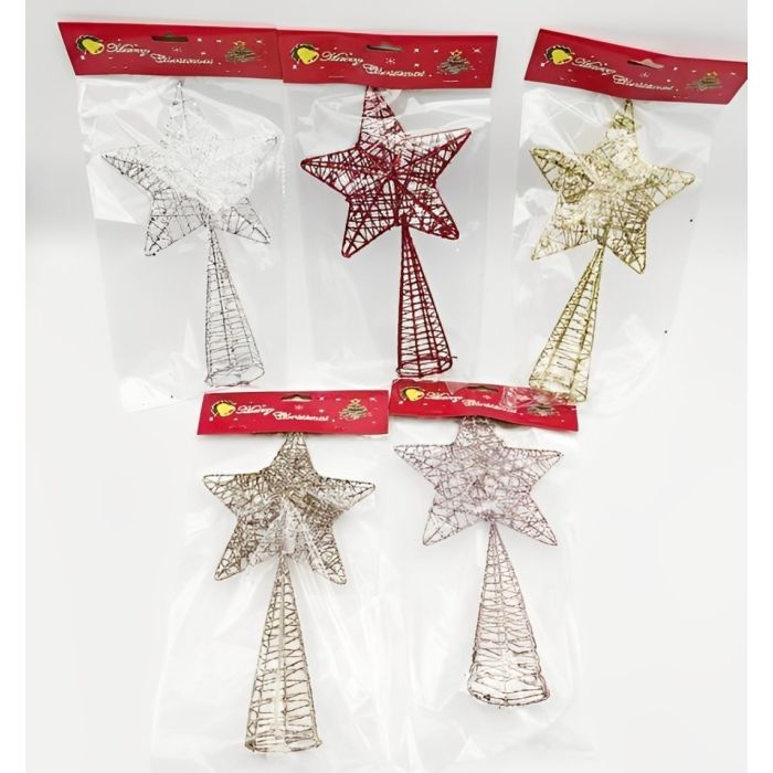 Note | - Puntale a forma di stella realizzato in filo metallico; - Traforato con glitter Prodotto Assortito |