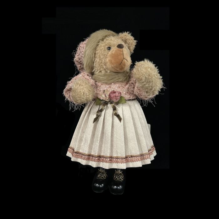 PUPAZZO ORSACCHIOTTO FEMMINA CON VESTITO E ROSELLINA H 55CM
