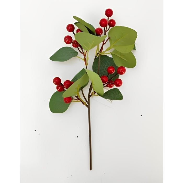 RAMETTO PICK FOGLIE VERDI CON BACCHE ROSSE H. 32CM