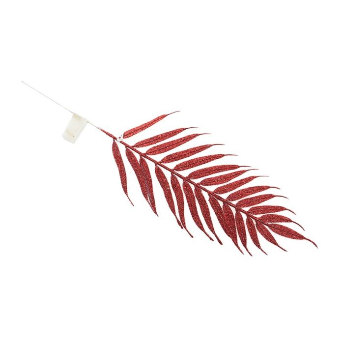 RAMO CON FOGLIA GLITTERATA H 37CM ROSSO