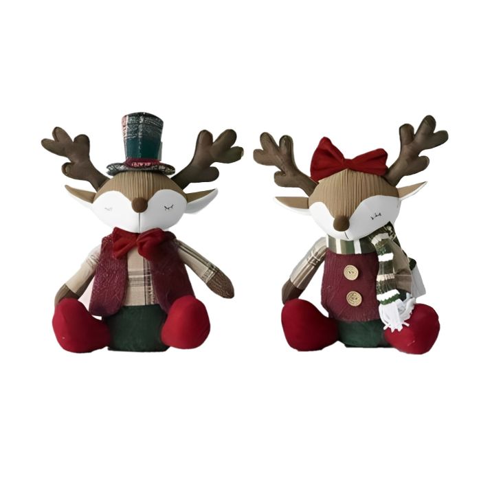 RENNA SEDUTA C/VESTE IN TESSUTO MASCHIO/FEMMINA H 32CM ASSORTITO