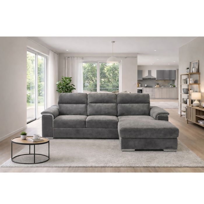 SALOTTO MOD. ANNA CHAISE LONGUE DX IN TESSUTO GRIGIO
