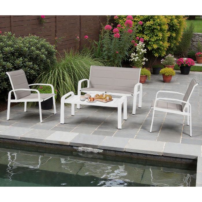 SALOTTO DA ESTERNO ELYN ALLUMINIO BIANCO E TEXTILENE BEIGE