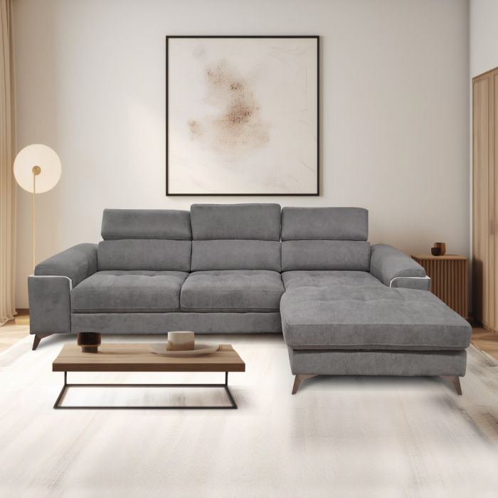 SALOTTO MOD. EROS CHAISE LONGUE DX CON CARRELLO ESTRAIBILE IN TESSUTO GRIGIO