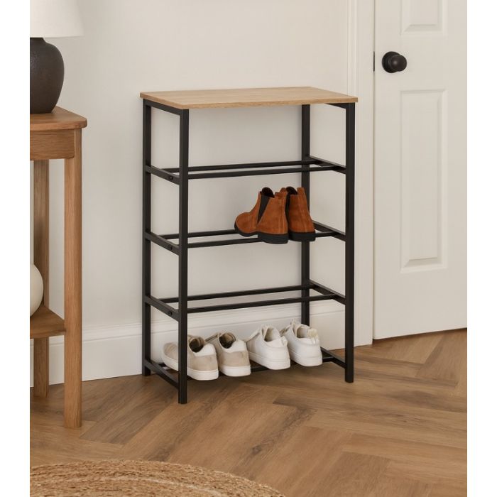 - Piano in mdf effetto rovere naturale - Capacità 12 paia di scarpe - Portata max per ripiano 5Kg cadauno |