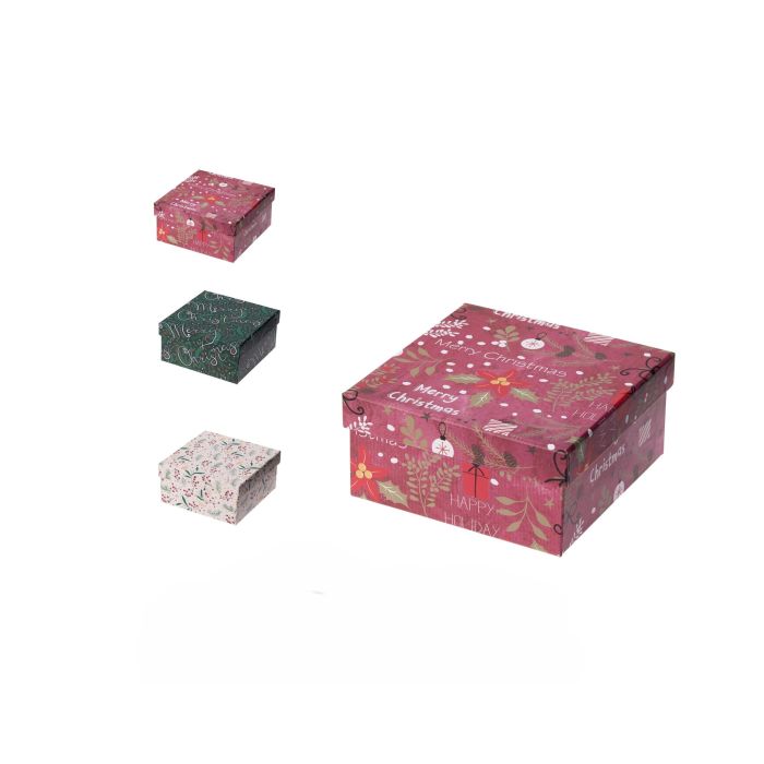 SCATOLA DI CARTA QUADRATA 14X14CM CON DECORO NATALIZIO VISCHIO ASS.