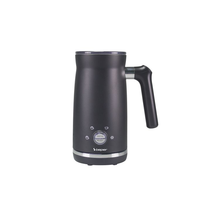 Schiumalatte elettrico con 4 funzioni: Schiuma densa calda; Schiuma leggera calda; Riscalda; Schiumatura a freddo. Capacità contenitore: 500 ml. Riscalda fino a 300ml, schiuma fino a 150ml. Corpo in plastica con doppia parete e rivestimento interno antiaderente facile da pulire. Frusto da schiumare in acciaio rimovibile. Manico ergonomico e coperchio trasparente. Luci di funzionamento a LED e spegnimento automatico. Protezione contro il surriscaldamento.