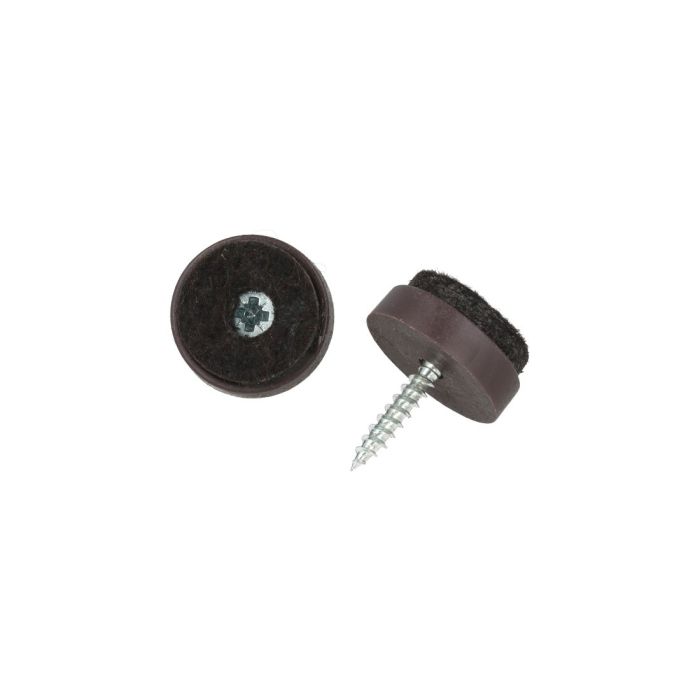 Set di 8 scivoli tondi in feltro marrone con diametro 24 mm, tutti dotati di vite integrata, ideali per proteggere pavimenti e superfici dall’usura e facilitare lo scorrimento dei mobili; il feltro resistente assicura una riduzione efficace del rumore e dei graffi, offrendo una soluzione pratica e duratura per la cura degli ambienti domestici.