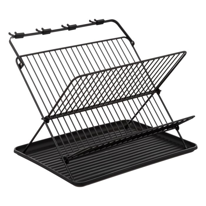 SCOLAPIATTI PIEGHEVOLE IN ACCIAIO E PP NERO 42.5X37.5 H. 33CM CON VASSOIO