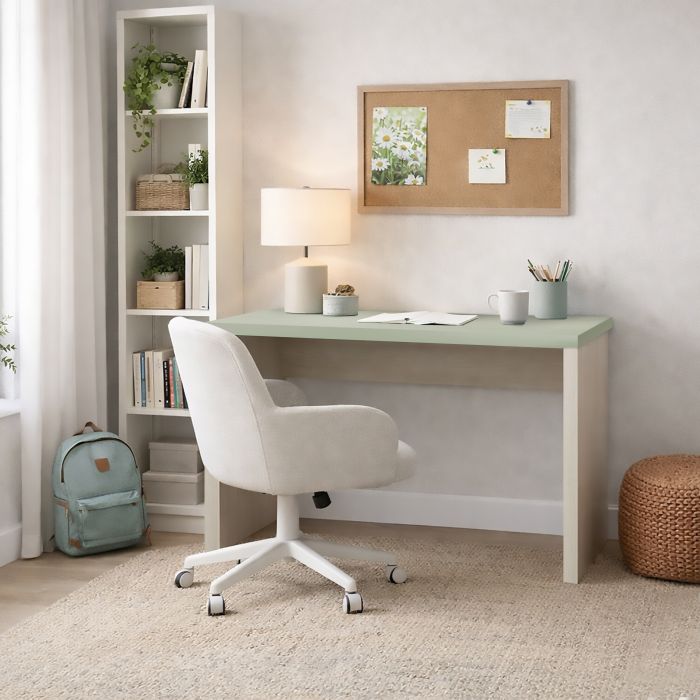 Questa scrivania unisce funzionalità e stile contemporaneo grazie alla sua struttura in laminato effetto olmo dallo spessore uniforme di 4 cm che dona calore e naturalezza all’ambiente. Il piano di lavoro, in raffinato color agave conferisce solidità e un tocco di design distintivo. Le dimensioni compatte — 123 cm di larghezza, 55 cm di profondità e 76 cm di altezza — la rendono ideale per spazi domestici o professionali, perfetta come postazione studio, angolo home office o punto d’appoggio versatile. La combinazione cromatica tra il legno chiaro e il verde agave crea un equilibrio visivo elegante e rilassante, adatto a interni moderni, nordici o naturali. La scrivania viene fornita smontata, con istruzioni per un montaggio semplice e intuitivo. La combinazione tra materiali robusti e finiture raffinate garantisce solidità, comfort visivo e versatilità d’arredo.