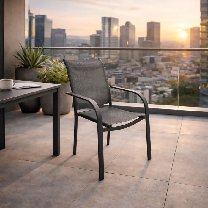 SEDIA DA ESTERNO IMPILABILE IN ALLUMINIO E TEXTILENE ANTRACITE/GRIGIA