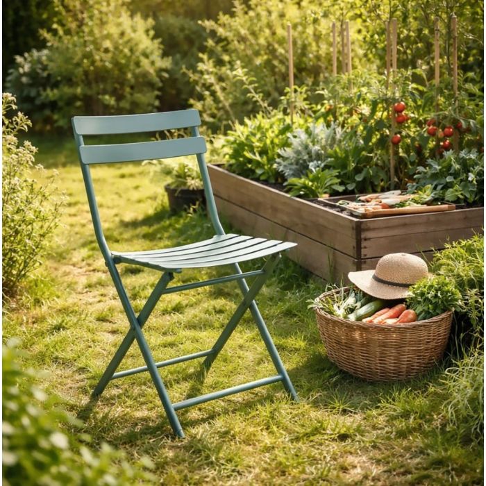 La sedia da esterno mod. GREENSBORO è realizzata con struttura in acciaio colore verde giada, è pieghevole, misura 51 x 42 x 80 cm con altezza seduta 42 cm, viene fornita montata ed è pensata per offrire una soluzione pratica, compatta e resistente ideale per balconi, terrazze e ambienti contract.