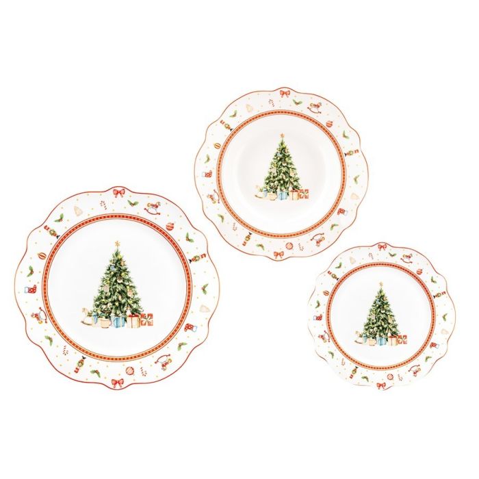 SERVIZIO PIATTI 18 PEZZI IN BONE CHINA DECORO ALBERO DI NATALE