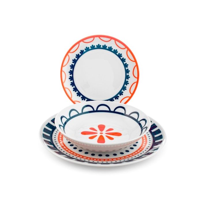 | Note | COMPRENDE: - 6 Piatti piani diam. 27,5cm - 6 Piatti fondi diam. 23,6cm - 6 Piatti dessert diam. 19,5cm - Lavabile in lavastoviglie - Adatto per forno e microonde |
