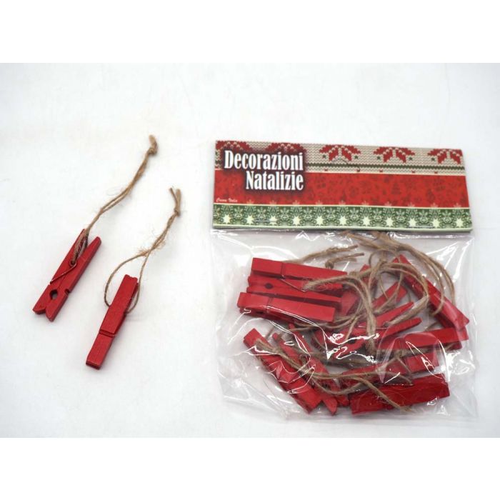 | Note | - Confezione di 12 pendenti in legno a forma di molletta; - Con spago per poterle appendere |