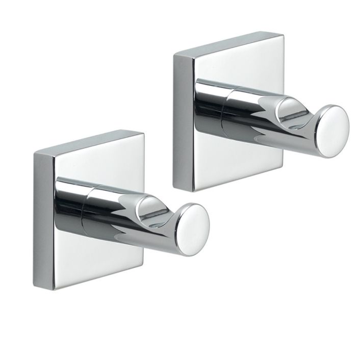 Set appendiabiti (2 pezzi) linea FUJI realizzati in Cromall colore cromato, dimensioni 4,7×4,8 h. 4,7cm, carico testato fino a 7kg, fissabili con viti (incluse) o con colla (venduta separatamente); dal design compatto e moderno, offrono due punti d’appoggio robusti e discreti, garantiscono installazione versatile e affidabile e completano ingresso o bagno con una soluzione pratica ed elegante.