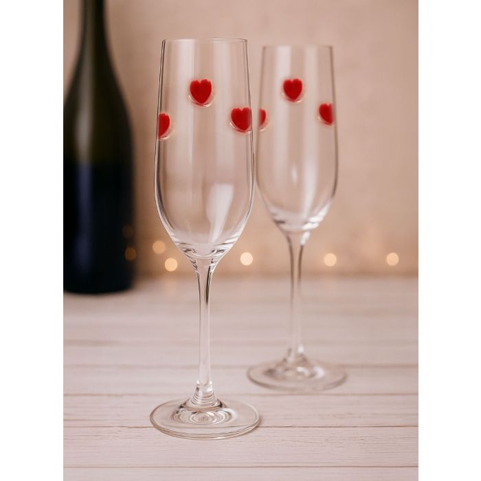 SET 2 FLUTE LINEA MY LOVE IN VETRO TRASPARENTE CON DECORO