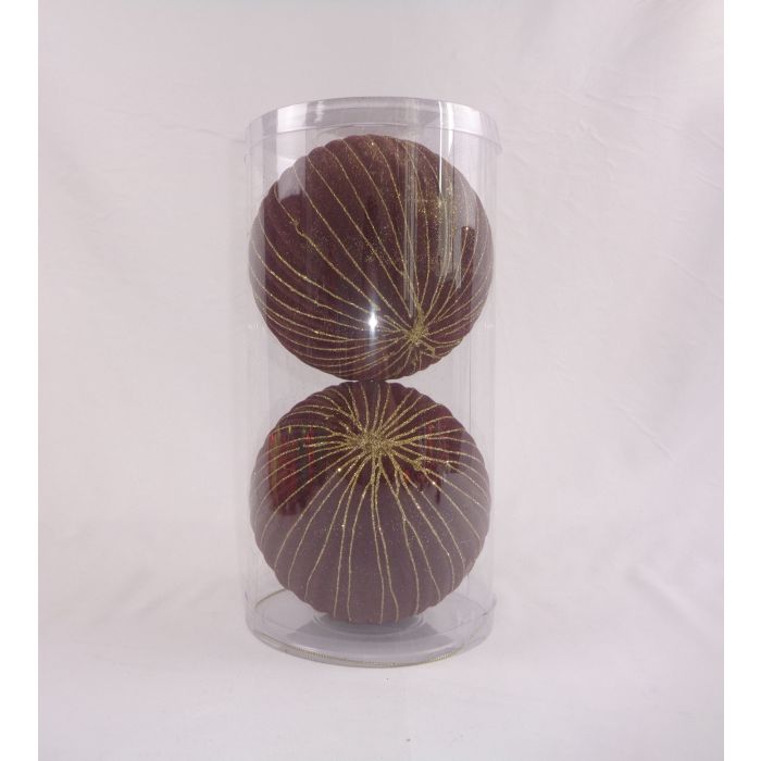 SET 2 PALLINE IN PLASTICA DIAM. 15CM FLOCCATE MARRONI