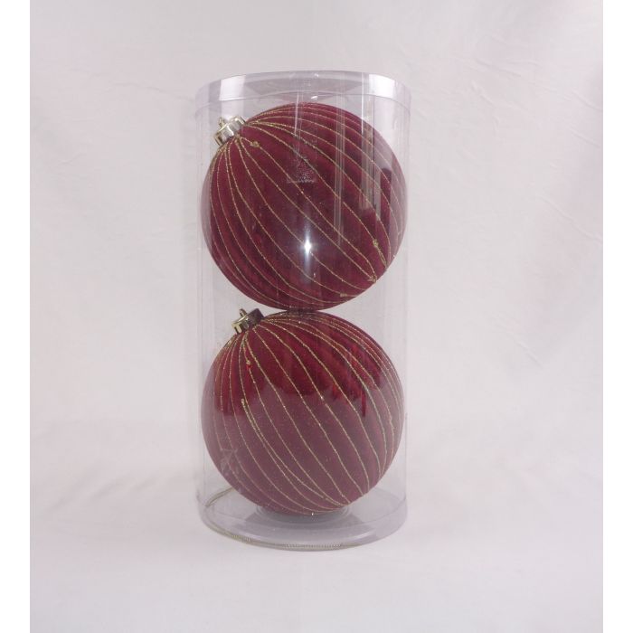 SET 2 PALLINE IN PLASTICA DIAM. 15CM FLOCCATE ROSSE