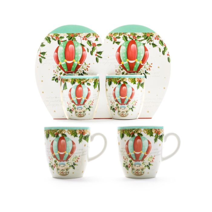 - Capacità 80ML - Con manico - Senza piattino - Decoro natalizio mongolfiera - Lavabili in lavastoviglie - Utilizzabili anche nel forno a microonde - Ideali per una tavola natalizia divertente e spiritosa. |