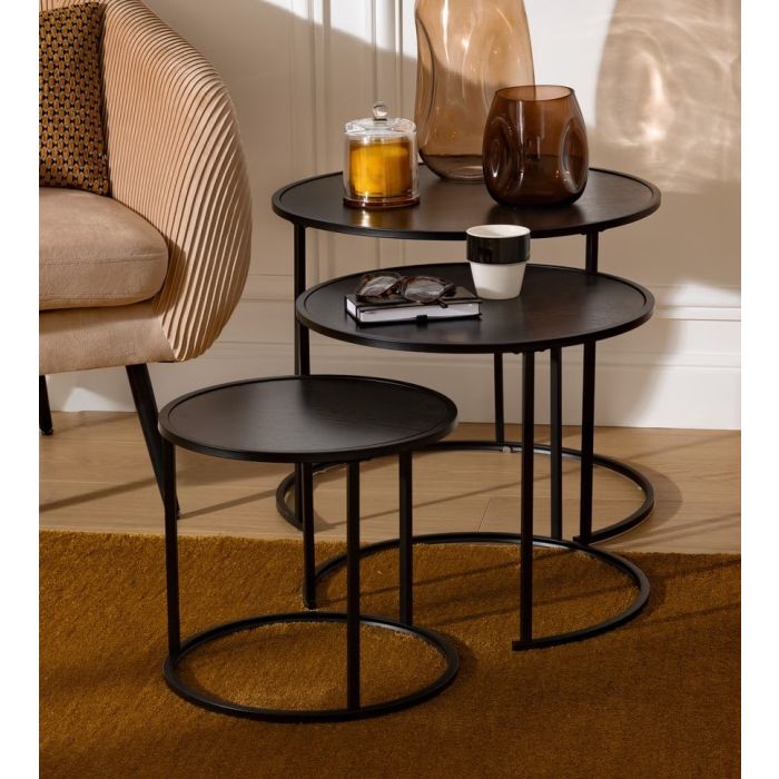 SET 3 TAVOLINI MOD. NOAN IN METALLO E MDF NERO