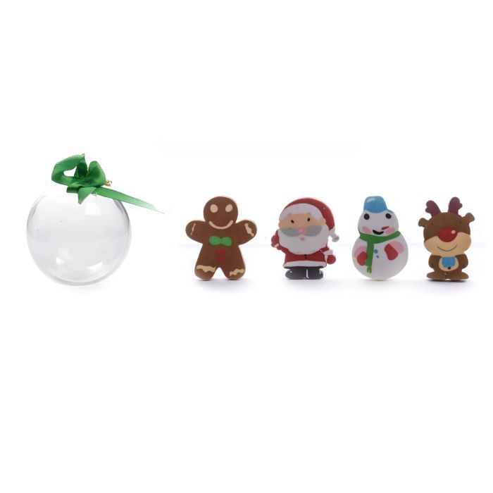 | Note | - Confezione di 4 gomme a tema natalizio; - Confezionate dentro ad una sfera di plastica dal diametro di 5cm; - Soggetti assortiti CHIEDERE DISPONIBILITÀ DEL SOGGETTO PRIMA DELL'ACQUISTO ALTRIMENTI VERRÀ SPEDITO UN SOGGETTO CASUALE |