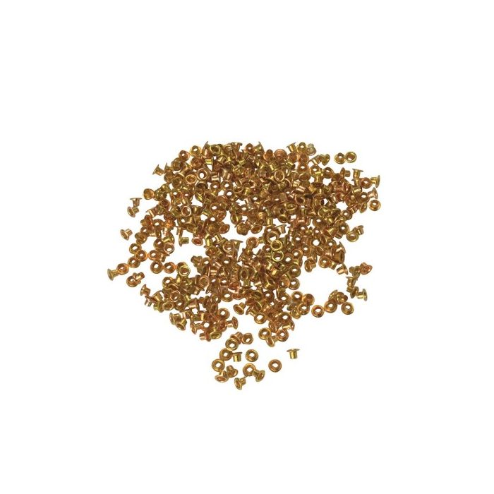 | Note | - Confezione di 400 occhielli con finitura ottonata; - Ø interno: 4.5mm; - Ideale per vari utilizzi su tessuti, pelle, carta e plastica |