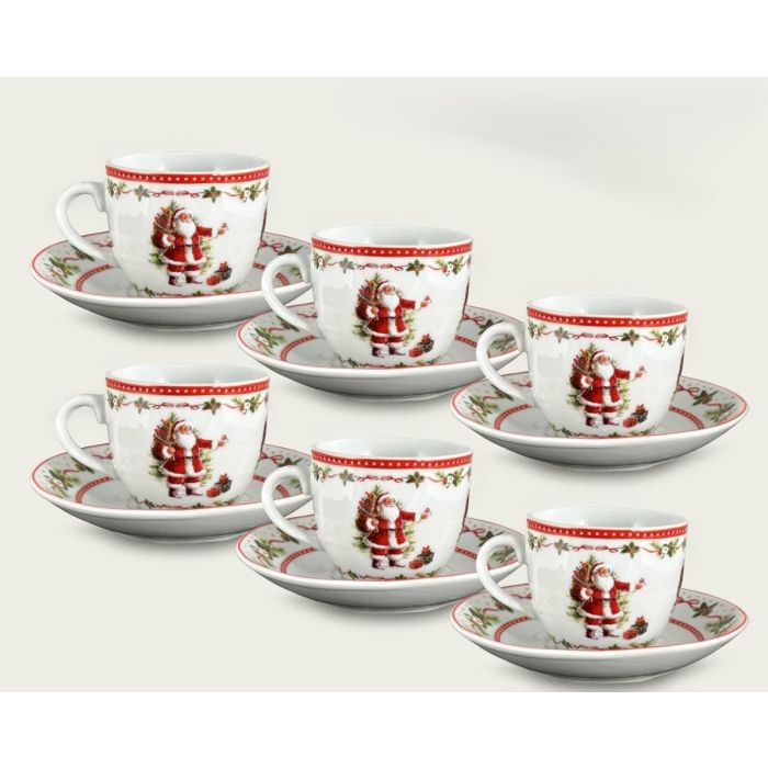 SET 6 TAZZINE 90ML SANTA CLAUS D 6CM H 5CM C/PIATTINO D 11CM PORCELLANA