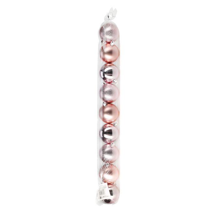 SET 9 SFERE DI PLASTICA ROSA LUCIDE/OPACHE/GLITTERATE DIAM.6 CM