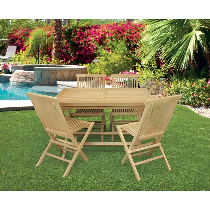SET TAVOLO + 4 SEDIE PIEGHEVOLI DA ESTERNO IN LEGNO DI TEAK
