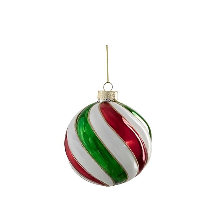 SFERA DI VETRO DIAM. 10CM CON RIGHE ROSSO/BIANCO/VERDE