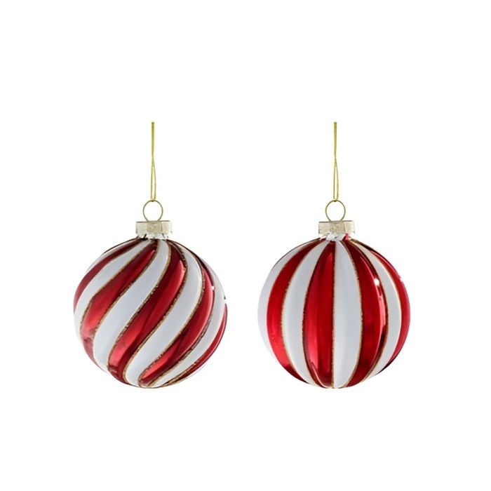SFERA DI VETRO DIAM. 8CM A RIGHE BIANCHE/ROSSE ASSORTITO