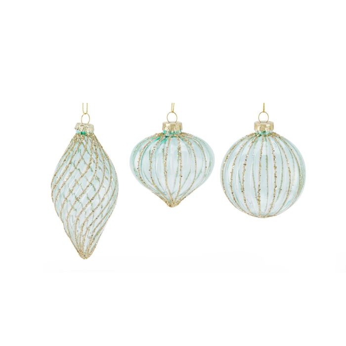 SFERA DI VETRO VERDE CON GLITTER ORO DIAM. 8-12CM ASS.