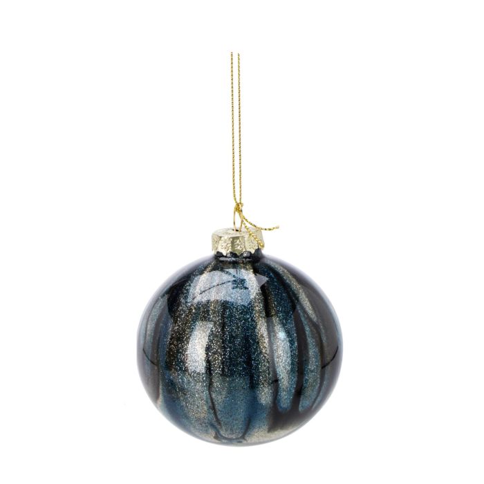 SFERA IN VETRO CON DECORO SFUMATO BLU E GLITTERATO ARGENTO DIAM. 8CM