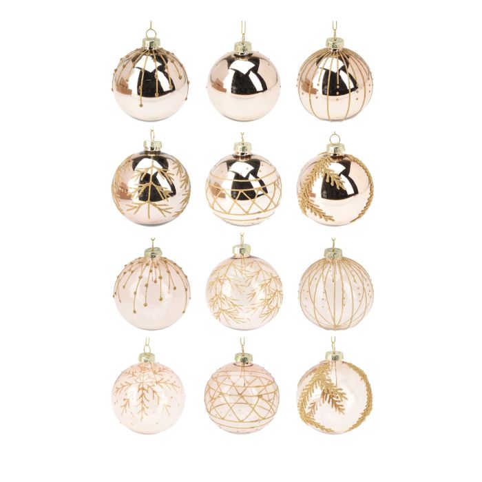 SFERA IN VETRO ORO LUCIDO/OPACO CON GLITTER DIAM. 8CM DECORO ASS.
