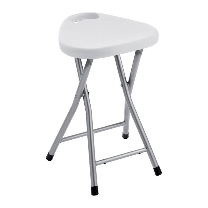 Sgabello da bagno richiudibile in metallo cromato e resina termoplastica bianco, dimensioni 30×29.3 h. 46,5cm, portata massima 100kg; gambe lucide per una finitura elegante e resistente, meccanismo salvaspazio con anello sotto la seduta da tirare per chiuderlo, stabile, facile da pulire e ideale per aggiungere un tocco pratico e colorato al bagno.