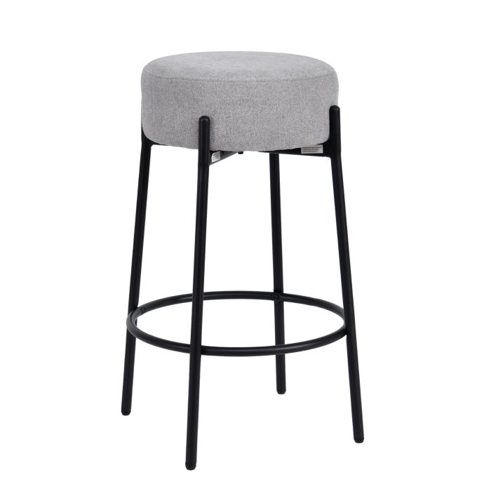 SGABELLO IN METALLO NERO E TESSUTO GRIGIO
