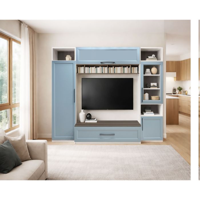 - 1 Ribalta - 1 Cestone - Particolari in laminato teak - Maniglia brown - Ante e ribalte con CHIUSURA RALLENTATA - Vano tv cm 147.2 H. 125 |