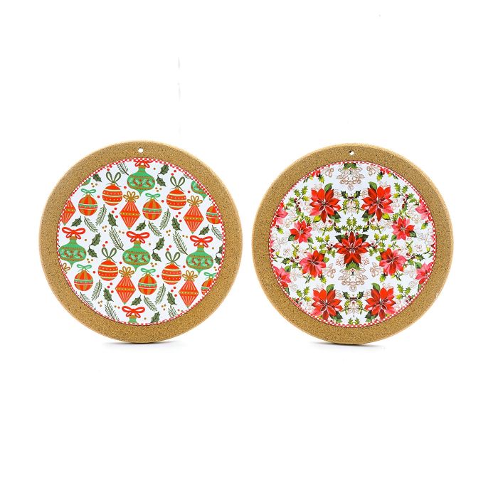 SOTTOPENTOLA IN CERAMICA E SUGHERO DIAM. 20CM H 1.5CM DECORO NATALIZIO ASS.