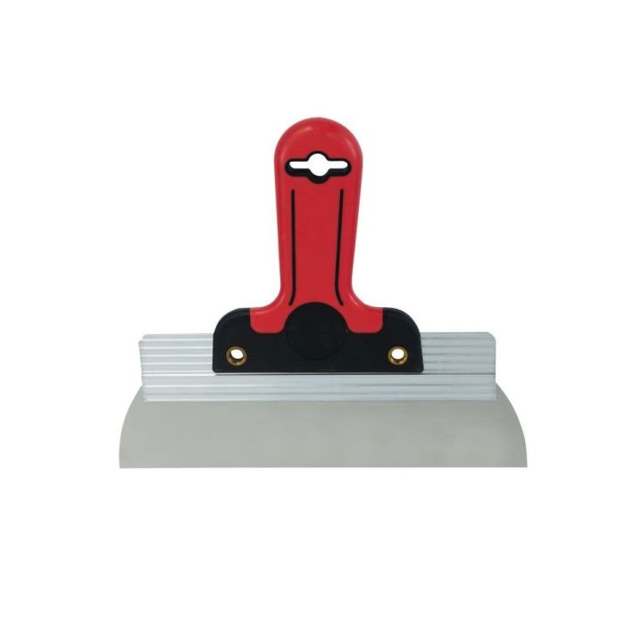 Spatola in acciaio inox da 25 cm, dotata di profilo in alluminio e impugnatura ergonomica bicomponente per una presa comoda e sicura; la lama rivettata, finemente lucidata ed elastica, garantisce una stesura uniforme ed è ideale per lavori su facciate, stucco, gesso e varie applicazioni di finitura.