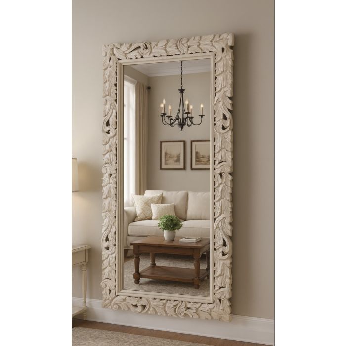 SPECCHIO RETTANGOLARE CM 70X140 IN LEGNO CON CORNICE INTAGLIATA BIANCA