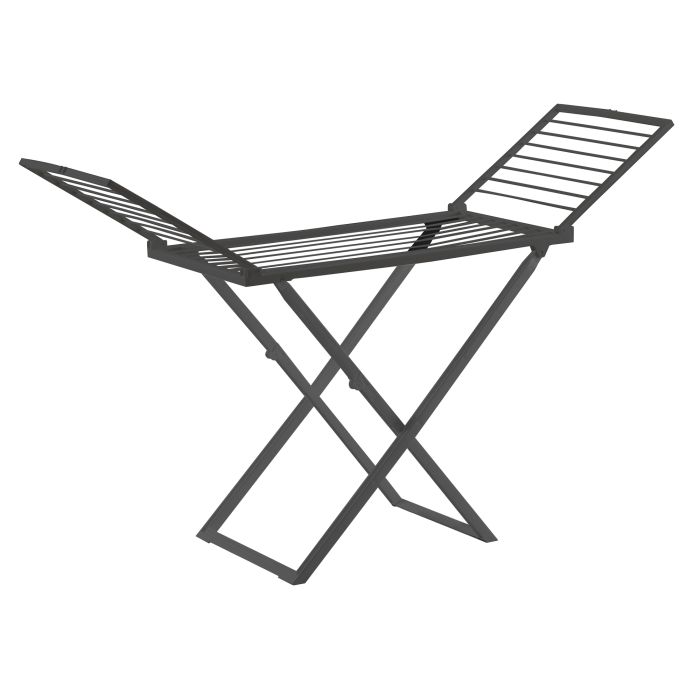 Stendibiancheria in polipropilene colore antracite con lunghezza utile di 18 m. Da aperto misura 185 × 56 × 120 mm, da chiuso 129 × 56 × 8,5 mm, struttura leggera e compatta che si ripone facilmente quando non in uso.