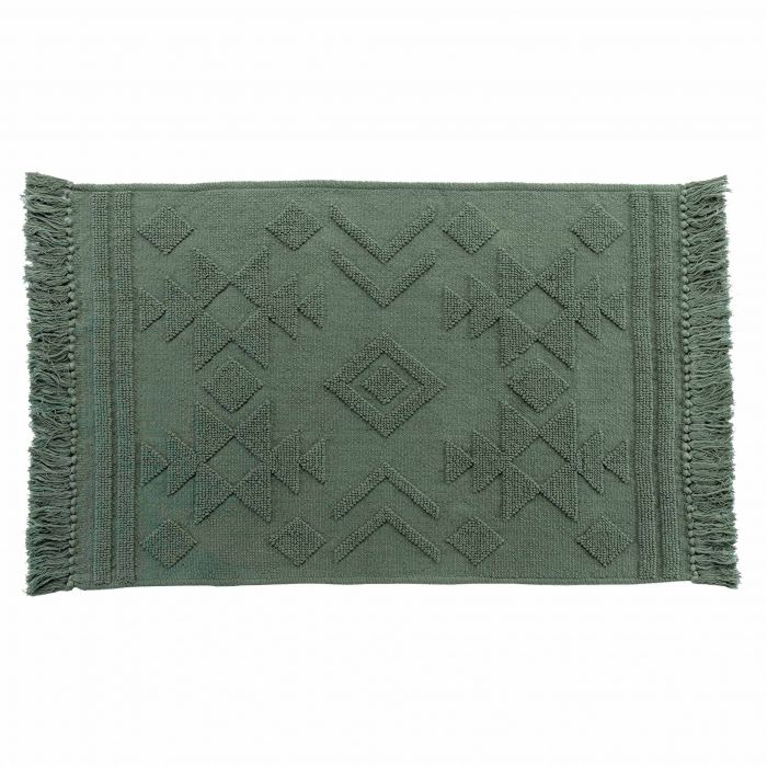Tappetino modello CILAOS realizzato in cotone jacquard, colore kaki. Questo particolare tipo di tappeto è in stile etnico ed ha delle fantasie sempre del medesimo stile. Può essere posato in qualsiasi ambiente della casa, dal soggiorno al terrazzo etc. Sui lati corti, sono presenti delle frange, che decorano ancor di più il tessuto. Si consiglia di lavare il tappetino in lavatrice a 40°, separatamente. Dalla forma rettangolare, misura 60x90cm.