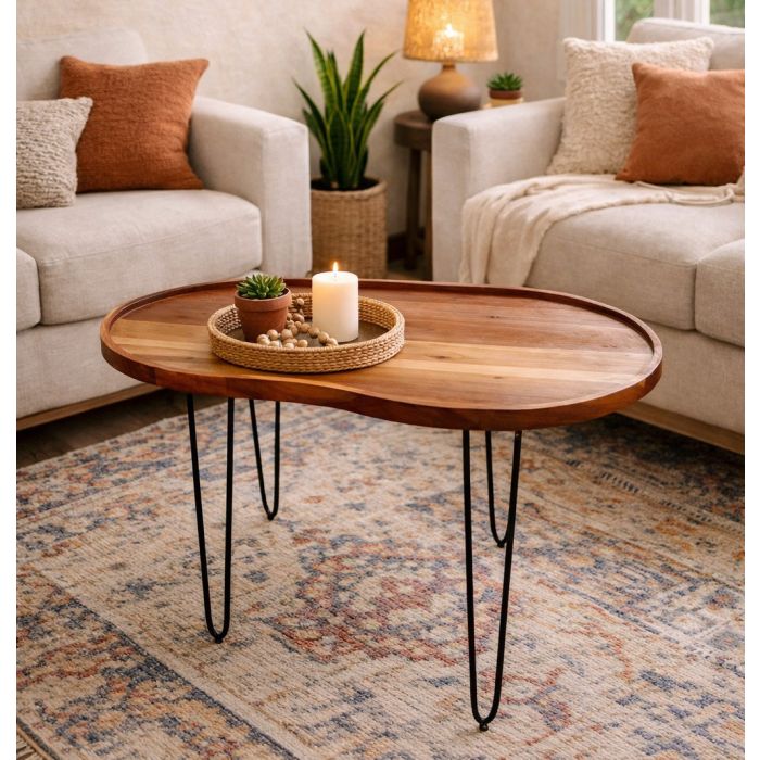 TAVOLINO IN METALLO NERO E LEGNO DI ACACIA CM 85X55 H.47