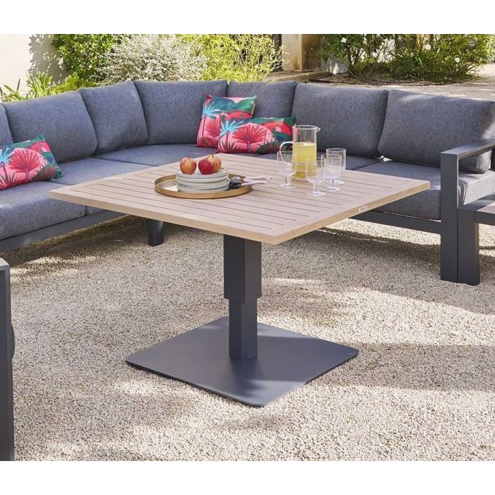 TAVOLO DA ESTERNO MOD. SALIMIA CM 110X110 GRAFITE CON PIANO EFFETTO LEGNO