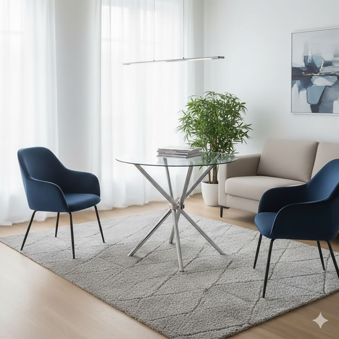 TAVOLO FISSO DIAM. CM 90 CROMO E VETRO