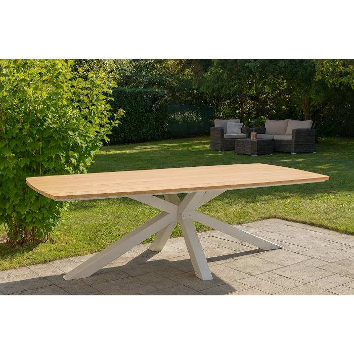 TAVOLO FISSO DA ESTERNO MOD. ORACLION CM 260X118 ALLUMINIO ARGILLA E PIANO EFFETTO LEGNO
