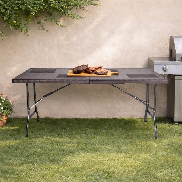 TAVOLO CM 180X75 METALLO E PLASTICA EFFETTO LEGNO/RATTAN